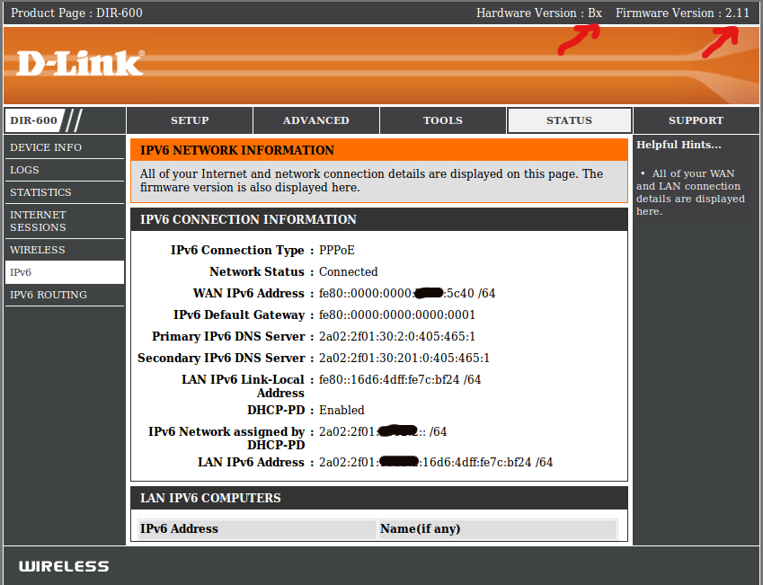 Salut. Confirm ce a zis Liviu. Am pus 2.11 pe DIR600 Bx si nu se duc in LAN RA-urile. In schimba daca setez statefull DHCPv6 merge.