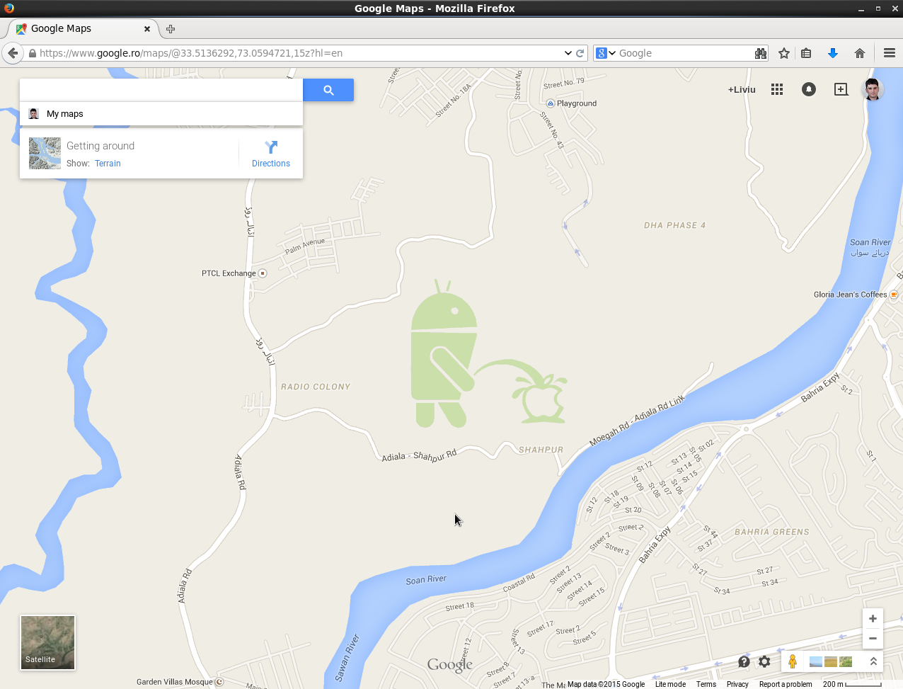 Daca intrati acum pe google maps, o sa observati la adresa (33.5136292,73.0594721) poza interesanta de mai jos: